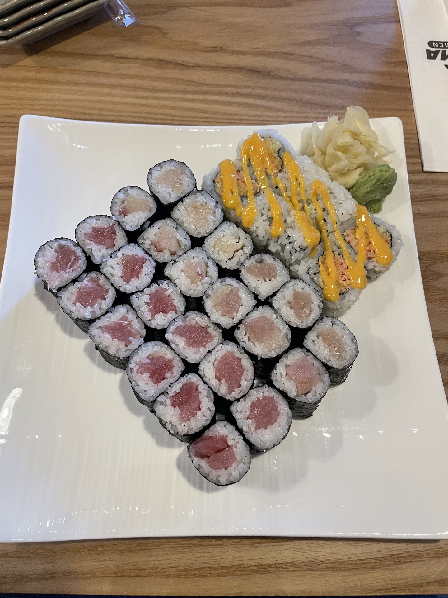 We tried Toyama for take out. We got 4 rolls (tuna avocado, salmon avocado, spicy tuna, and spicy salmon) as well as nigiri combo B.