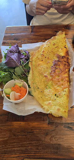 Read moreI came here for the Banh Xeo. Iâve only had this mid town so I wanted to try it somewhere else. This Vietnamese crepe takes about 20min to make so Iâd order this as soon as I sat down. When it showed up it was larger than I expected and filled with lots of goodies. The sweet fish sauce is in a bottle thatâs already on the table. This is great since you can use as much as you want and it is required for this dish. You have to cut/tear this into pieces that wrap with lettuce leafs. Itâs delicious and serve as a meal if you eat it alone. I recommend sharing so that you can try other dishes. The other herbs I didnât use. One of them had such a strong odor that I found off putting. This is my favorite Banh Xeo so far. The Hu Tieu Nam Vang noodle soup had a strong flavorful delicious broth. My wife thought it was a little fishy but I didnât find that to be the case. There are organ meats in it so beware if youâre not into that. The Wonton noodle couple had a very delicious broth as well. Windows were soft thin wrappers that I like. Overall very good to eat with the sweet pickled jalapenos. I also ordered the Bun Dau Mam Tom which is served with a sweet fermented shrimp paste. The paste was okay but preferred dipping with the fish sauce instead. There are much more organic meats here including pig intestines. Overall I appreciated the uniqueness of this dish but at the end of the day itâs not for me. This dish is not for the faint of heart. This restaurant serves traditional Vietnamese street food and they definitely appeal to those who misses their home food. Iâd come back again and try other things including...