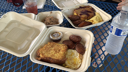 Ā Ā Ā Read moreWhile it is anticipated that you will spend more than island average in Poipi, this venue sets a new standard in duplicity. The restaurant itself is a stall. Seating is limited to two picnic tables. If it is raining, you are definitely dining elsewhere. The online menu is no longer offered by the new owners. My wife ordered the Tow-In plate (2 runny scrambled egg, 4 average size strips of bacon, and 2 pieces of french toast). I ordered a side of french toast - $11 for one Hawaiian bread toast slice. The food quality was that of a mediocre cafeteria. My wife had hibiscus tea - good. I ordered coconut water - $5 for a Kirklands juice box. The only areas of praise I can give are convenience of location and promptness of service. The photos others have posted are representative, but they are way overselling the experience. It just ain't authentic. You are vacationing in paradise. Seek the gold standard in quality set by so many other local Kauai...
