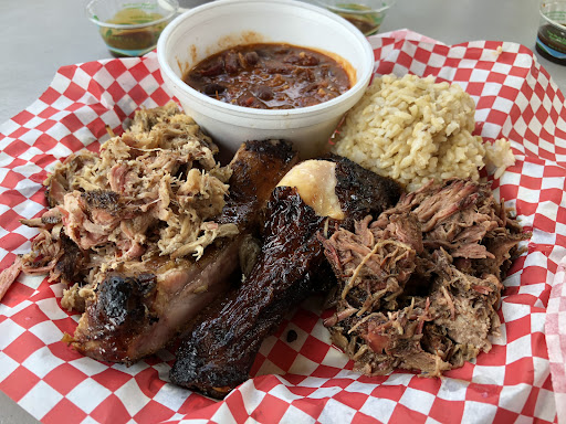 I ordered at the Kapaa location across the community center. The order for three plates was around $55, which, to be honest, isn't bad for Kauai. I was stuffed after the chicken plate, and my brother loved the ribs and chicken. They even allowed us to choose between white or dark meat. Don't forget the BBQ sauce, and yes, the hot sauce will make your nose run.