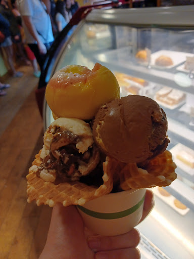 Read moreWhen we entered the Café it smelled wonderful like fresh baked waffles. And indeed that's what they do, they bake and form their own waffles, which taste amazing. But even more amazing was their ice cream or gelato (I don't know the difference, always been thinking gelato is just Italian for ice cream). They've got a huge selection of different flavors it's so difficult to select from, that you can either get the standard one or two scoops (which are HUGE, at least compared to what I'm used to at home) or you can get the "I don't know" option (it is named like this for real) from their menu like I did, giving you 5 "half scoops" and thus more flavors to choose. My favorite was the coconut flavor and the baked banana with caramel one, the roasted macadamia and salted something (I really don't remember) was awesome as well. Basically, all flavors we chose (7 different ones in total) were awesome. The price is pretty decent given the size and the quality of their ice cream. I also had a double cappuccino and I really liked the strong roasted coffee aroma of the espresso used. The milk foam on top was magnificent. Overall, worth a visit, nice cozy and small place, you can smell the waffles, coffee and other pastries (which we didn't try yet, but they all looked awesome, fresh and tasty) produced there. You can enjoy your gelato, coffee or pastries outside, but the available places are few. Very friendly stuff as well, the Café is very clean and...