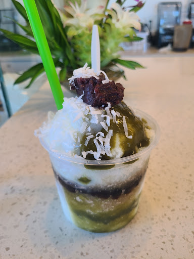 Read moreThis is a local cafe who clearly cares about presentation and quality... She treats it like art! Just like her color changing glass jewelry she makes right next door.... (I'm obsessed with her earrings) the owner is the sweetest baking/making everything in house including the syrups for her SNOW ice! Super fluffy! She even has origami for kids who want to take it home to play with. So nice and always smiling! My favorite is the matcha boba tea, matcha sparkling with strawberry, AND strawberry snow ice hands down :) Service has always been quick for me. Maybe 5 - 10 min and sometimes a little bit more when it's packed (clearly it's becoming popular...) so DEFINITELY WORTH THE WAIT!!! Can't wait...