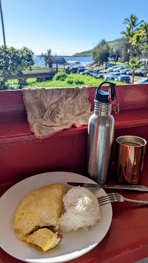 Read moreLocated on a busy two lane Highway. Close to the airport,, across from local shops and restaurants. Close to Marriott hotel and within one half mile from marina and cruise liner dock. A mix of great fresh fish sandwiches, a variety of burgers, plate lunches and local food (grinds in Island pidgin). No alcohol. Coconut water and common soft drinks. Great staff. Ground floor with wide-screen television to watch the surfing channels. Upstairs seating with view of harbor. Pricey but very fresh. One of my favorite lunch menus....
