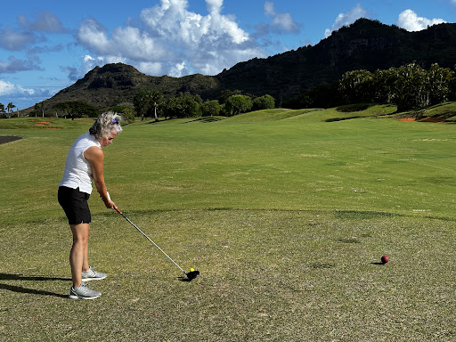 The cost was reduced due to our kama aina discount (have all licenses ready for all parties who live locally). We played the front nine, which had its challenges with water hazards and dog legs, but never felt overwhelming, especially for my wife.