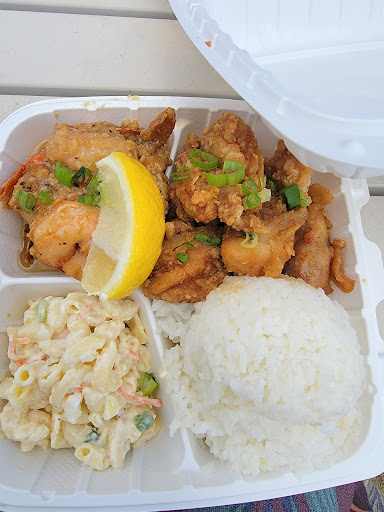 Loved that it was a true local spot. I got the shrimp/smileys chicken, chili garlic style. Husband got Katsu (not pictured). The food was pretty good. It wasn't bad at all and it was satisfying. Not the bessst food ever. I've had better garlic shrimp on the island (Wake up Cafe in Hanalei, also local spot). The chicken was nice and tasty. Katsu was just fine and good.