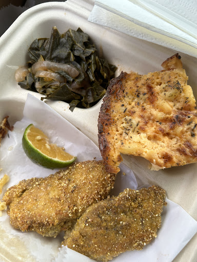 Wish I could eat here every day because their "Soul Food" is literally food for my soul. Do you want to feed your soul? Seriously! Do you want to feed your soul through your taste buds and belly? I returned here for the heavenly mung bean soup, but I couldn't resist the fish fry with collard greens today for lunch. Scrumptious collard greens that pack all the nutrition your heart and soul will ever need! The greens are perfectly balanced with savory broth and sweet pickled onions. It came with a side of macaroni and cheese baked so perfectly the noodles dance on your teeth with the "al-dente-rhumba" (I just made up that food-dance!) And the cheese is so melty and buttery you'll want to jam more spoonfuls of their mac & cheese into your mouth before you've even chewed and swallowed the first bite! Please PLEASE go eat here. I can't eat it all myself, I'm so full I'll probably won't have to eat again for a week, but I want this restaurant to stay in business so I can come back here when I'm hungry again. I didn't even tell you about the side orders: Aïoli which I used for the fried fish Lemon vinaigrette which I drank as a beverage! I literally drank the vinaigrette dressing because it's so freaking delicious. Cornbread yum! Homestyle ambience,...