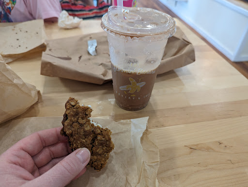 Read moreOh my goodness. This place is perfect. My family is staying at a nearby hotel and this has become our regular breakfast spot. I'm not usually a fan of sweet coffee drinks but I adore the chocolate banana cold brew. It's perfect. Pictured is the oatmeal cookie sandwich, like a large whoopie pie. My husband and I fought over it and I won the last bite. My kids like the bagels and can pick their own spreads (peanut butter, Nutella, cream cheese, etc). So far we've also tried the cinnamon roll, banana bread, banana pudding and the brownie. All are worth it. We're looking forward to trying more things over the next few days. The staff are friendly and helpful and the shop itself is cute and bright. Definitely worth a trip, and if you're staying close by, skip the hotel breakfast...