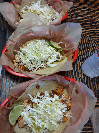Nice pros Staff was nice The tacos are all hand cooked, even the wrap A shipment of fresh foods literally rolled past us while we were inside No fast food waste (like styrofoam boxes and plastic forks), all red plastic baskets and forks are returned Has variety of fish tacos and other seafood taco options Many chickens were around wanting a snack, so that was fun to see