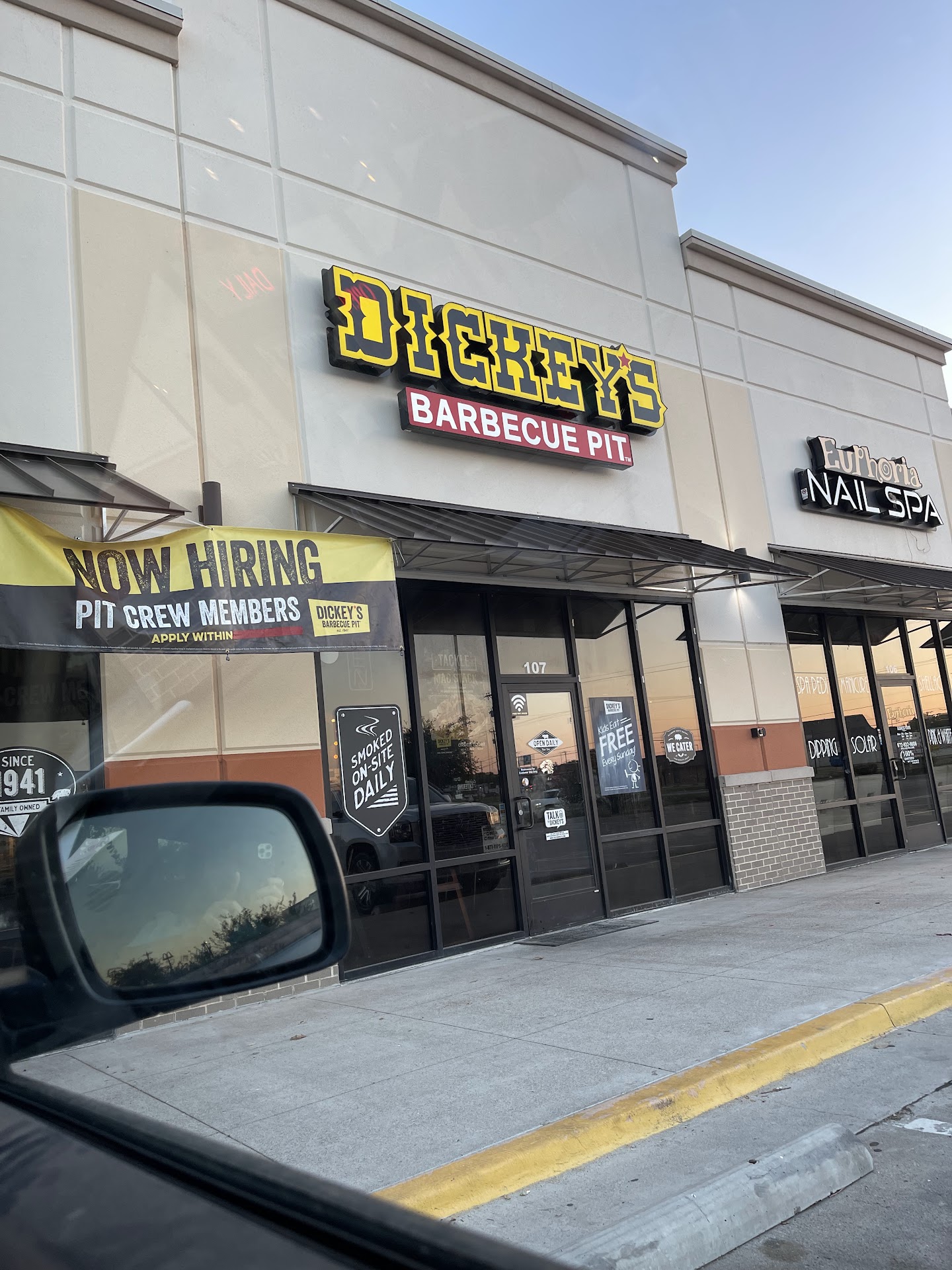 Read moreThis particular Bbq restaurant is Very Special. The sliced brisket was So FLAVORFUL and Super Tender!! I was so Surprised. I also had coleslaw and green beans which were very very good also. As I was finishing my meal ; a man in a booth asked me how Iliked it. I told him how good it was and he said he was glad to hear it because he smoked the meat hom self. I told him how surprised I was with how flavorful and tender it was, especially being a chain restaurant. He told me All of the different steps he takes to get It that way...One of his steps Is very time-consuming,expensive and very unique. I travel a lot and have eaten at The best barbecue restaurants in the southern states. My favorite being Franklin's bbq in Austin, and used to be my 2nd Hoodoes in Dalehart tx... this Particular Dickies bbq in Kaufman is almost tied for First. The man I spoke with who put so much love into his barbecue ended up being the owner of this franchise, Every time I come through here I will always get at least one meal from him even if I have already ate. P.S : the owneralso gave me some homemade Ambrosia to try I took it with me andput it my cooler. 2 days later remembered it- IT WAS SO GOOD- U GUYS...