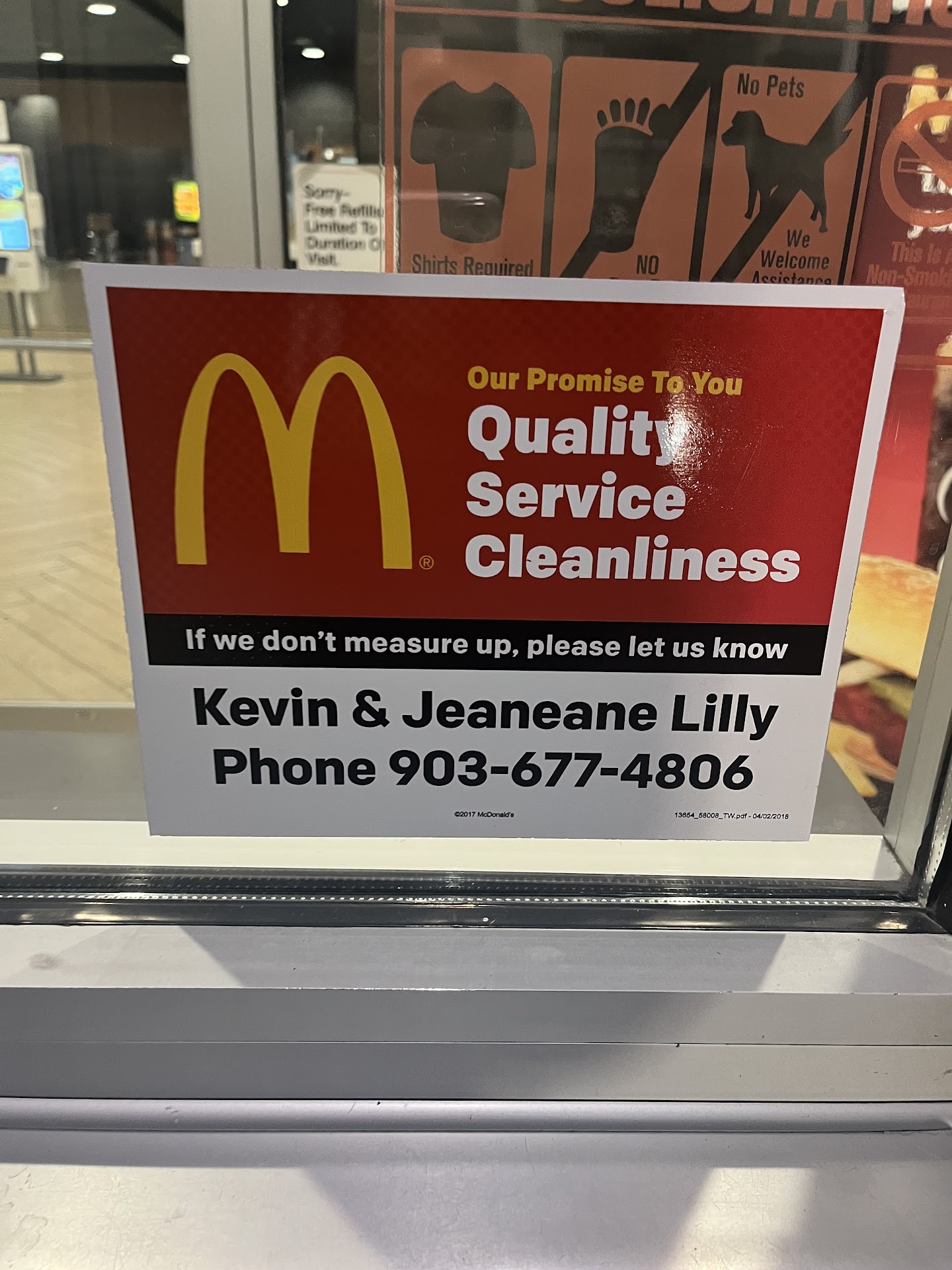 Read moreWorst service I have ever had! First we drove up to the drive thru and watched as 4 cars that came after us have their orders taken on the outer lane. Some of them were cars that were behind us who backed up and changed lanes. When we heard the 5th start giving their order we drove out of line and went in to order. When we went in we told a manager about it and they apologized, said they would check headsets and just walked away from us. We tried to place the order from the kiosk but 3 of the 4 were not working so we got in line. We ordered our food and waited. When the same manager came to bring us our large order she dropped it all over the floor. She picked up the large bag of food and went back behind the counter and 5 minutes later she came back with our food. When we checked our order we seen that our 2 orders of 40 pc. nuggets was spilled out in the bottom of the bag. I went to the District Manager to complain and she said “I heard about the drive thru and I know she dropped your food but she replaced it all” When I told the District Manager about the nuggets being spilled out she said sorry and walked away from me leaving me just standing there for several minutes so we left. Needless to say they only replaced the fries that spilled and our entire...