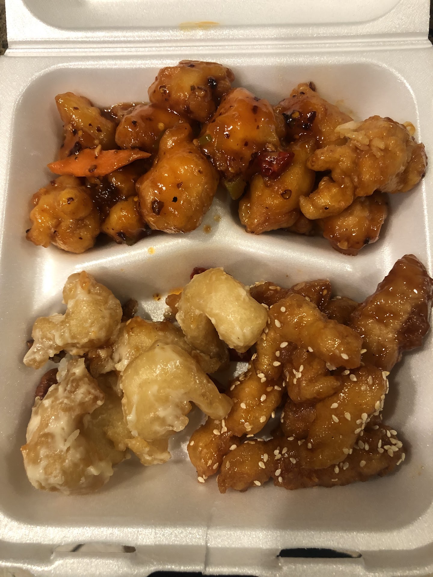 Read moreYep it could have been better. What was seriously lacking with the three dishes I ordered was vegetables. What is up with these Chinese places that focus on meat meat meat and no veggies! Veggies are cheap and add more to the dang meal. The hot and sour soup was good but when the three dishes came out all of us said "Where's the veggies?" I paid $50 for three dishes and was completely unsatisfied. As soon as I got home I had to have veggies just to make up for the lack of... LOL. This was my first and my last time here folks and I suggest if you go here you will have to spend extra money for just a veggie dish. Also, when I order two distinctly different chicken dishes they better look and taste different. This was not the case. The sign of a great Chinese restaurant is when every dish looks and tastes uniquely different. Enough said, go...