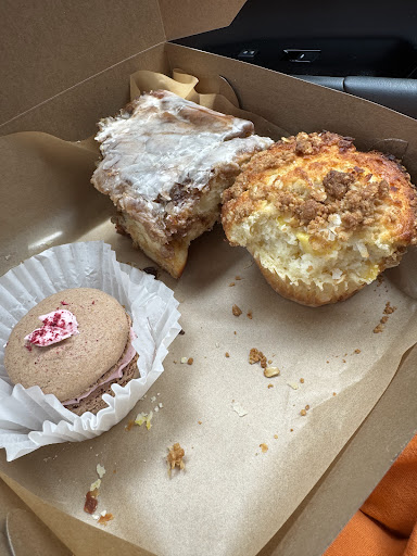 Read moreThe BEST PASTRIES AND MACARONS weâve EVERRRRRRR had!!!!!!!!!!!!! And we are connoisseurs of pastries and treats. We âmmmmmmmmâ and âmmmm oohh mmmmmhhhhâ with every bite. The flavors, the the moistness, the perfection on the cinnamon roll, muffins, and Pain Au Raison - pastry chefs kiss!! We went for donuts, but left with even better treats! The girls helping are as sweet as the treats! Hands down, a must go while in the Hilo area. Itâs worth the drive and if youâre heading to the Volcano itâs on the way. I didnât get a pic before we dove in, but you can see the pineapple and coconut in the muffin - incredible, so good! It was so hard to choose, everything looked so delicious! Weâll be visited them every...