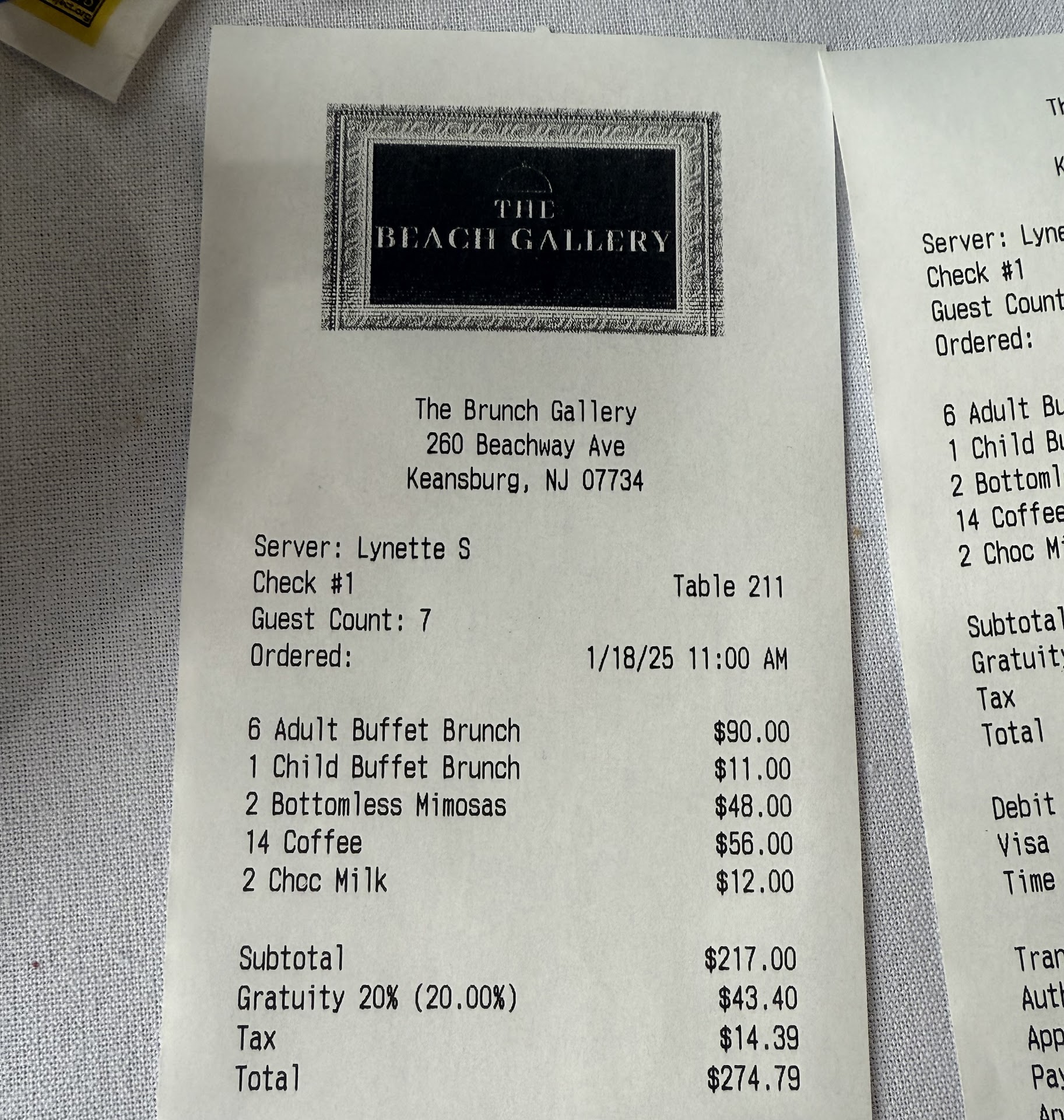 We received 10% off our bill, $36! This did not even cover 1 adult meal ($50).