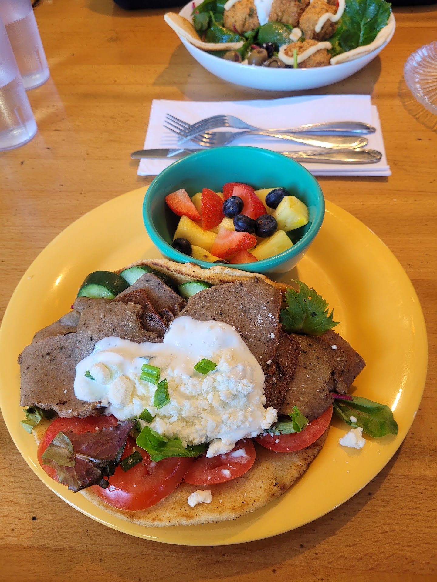 My friend recommended this place to me when I was talking about a lack of good breakfast burritos in Kearney. Boy was I wrong. These burritos were big and delicious. For less than $11 you got the big burrito, salsa, and fresh fruit. The fruit was soo good. Very fresh. I don't know where they're getting it, but it was very quality. The burrito itself was so good. I got Chorizo it was stuffed with eggs, potatoes, cheese, and a healthy portion of Chorizo. My wife and I thought $10.75 was a bit much for a breakfast burrito and fruit, but trust me when I say this is some quality bang for your buck. Would definitely recommend scratching that breakfast burrito itch at Full Curcle Bakery. We didn't get any of the baked goods, but I saw some kind of stuffed croissant served to someone in front of me in line when I first walked in that looked flaky and incredible! Sorry I only have the one picture. I meant to take a pic after a bite or two, but I never put it down.