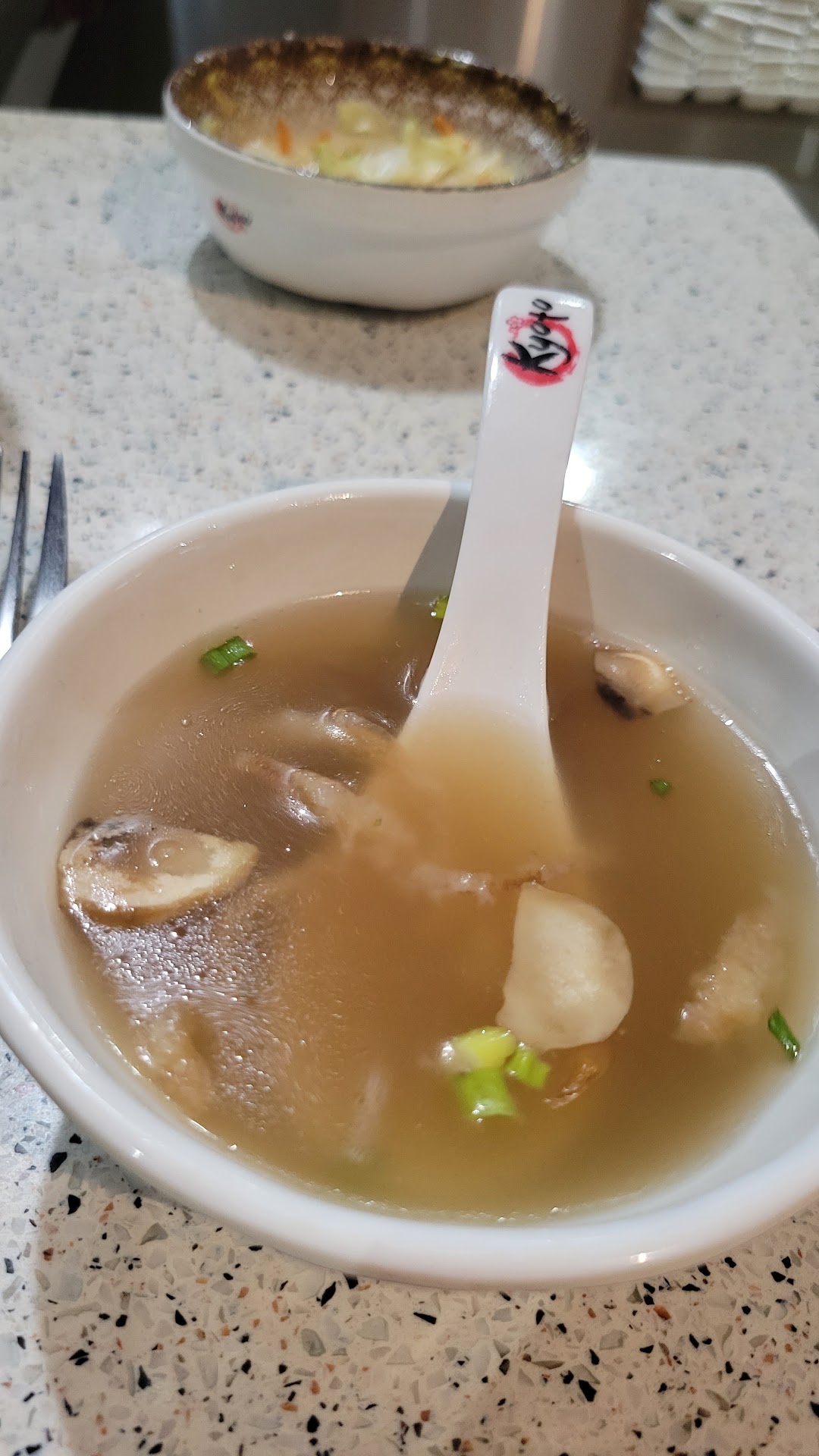 Note that this is an expensive dinner - $25 or so for a meal - but it includes the salad, soup, rice, veggies, meat choice, and a couple of shrimp! Everyone has leftovers at the end, so plan on two meals from that price.
