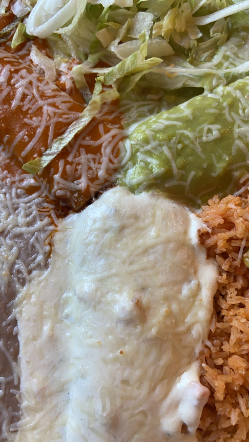 We recently ate here on a road trip from Atlanta to Salt Lake City. We had a huge truck with a trailer and a car on it with all our son's stuff, so we needed somewhere that was safe to eat so nobody would steal our stuff. This restaurant was great. The food was typical Mexican with lots of veggie options. I had an interesting dish called Chilaquiles con huevos which was crispy deep fried corn tortillas scrambled with eggs and sauce topped with cheese, rice and beans. It was really yummy. We also had the veggie enchiladas and the Expresso vegetarian. Everything was delicious and I had enough left over to eat later on...