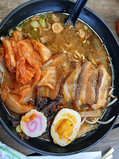 Today, I got the Kimchi Ramen and it surpassed all expectations. Wonderfully hot and spicy broth but not overpowering with pork belly and kimchi. It was fantastic. They use a 10 point scale for heat level. I got a 7 and was not at all overpowered. It seemed just right for me, but I eat really hot food so order accordingly. I also got an order of takoyaki (octopus fritters) and they were excellent at well. I also got a Japanese soda. If you've never had one, they are quite nice and the opening process is fun.