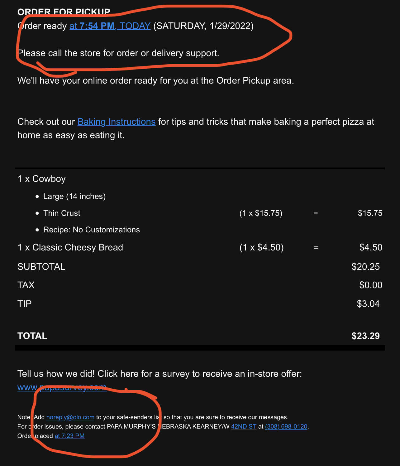 Read moreI ordered online at 7:23pm and pickup was scheduled for 7:56. I got a call 3 mins later stating that they close at 7:30pm and that my order was ready for pickup. Everywhere online says that they close at 8pm. I questioned the guy about that and he said corporate doesnât keep up with their local hours. I feel terrible about making them wait as I was a 20 min drive away. I show up at 7:42 and the lights are off but I notice the hours on the doorâŚit says that they close at 9. I just grab the pizza and leave. I donât like being lied to and I hope this problem will get fixed (looks like Iâm not alone according to other reviews on here). Itâs one of my favorite pizzas but that alone is not enough to keep businesses afloat in...
