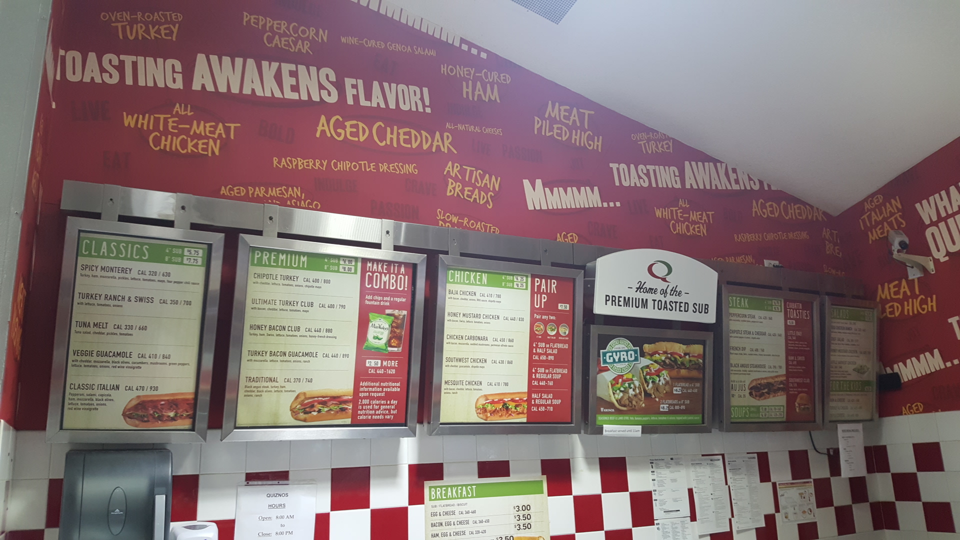 Well, I feel that Quiznos doesn't get the recognition they deserve these days. They have great sandwiches and I am so sad they don't exist in the area I am from anymore (CB/Omaha). That is why my family purposely planned to stop at this location as we were headed to vacation in Colorado. Their #1 best sandwich in my book is the Traditional with no Black Olives and get a side of the Pepper sauce for dipping it in. The only thing I found disappointing about this location was their lack of the Famous Quiznos Pepper Bar. I am sure they pry have them to give you if you ask the staff, well at least they had the pepper sauce which was the most important thing to me. So Delicious. One thing that is particularly cool about this location is since they are in a gas station their drink choices and sizings are quite a bit larger than...