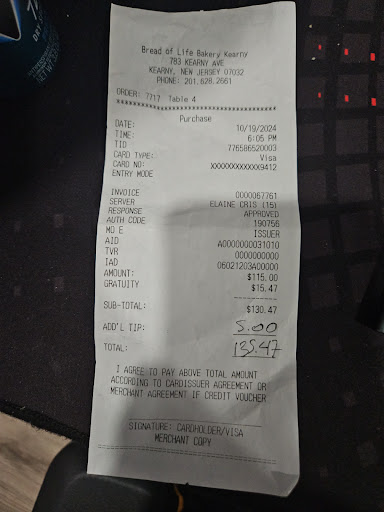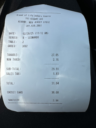 Venho aqui expressar meu descontentamento com os últimos serviços que tive o desprazer de experienciar no estabelecimento Pão da vida (Bread of Life) de Kearny. Aconselho a visitar o outro estabelecimento que se encontra na Ferry Street de Newark New Jersey, e se manter distante do estabelecimento de Kearny.