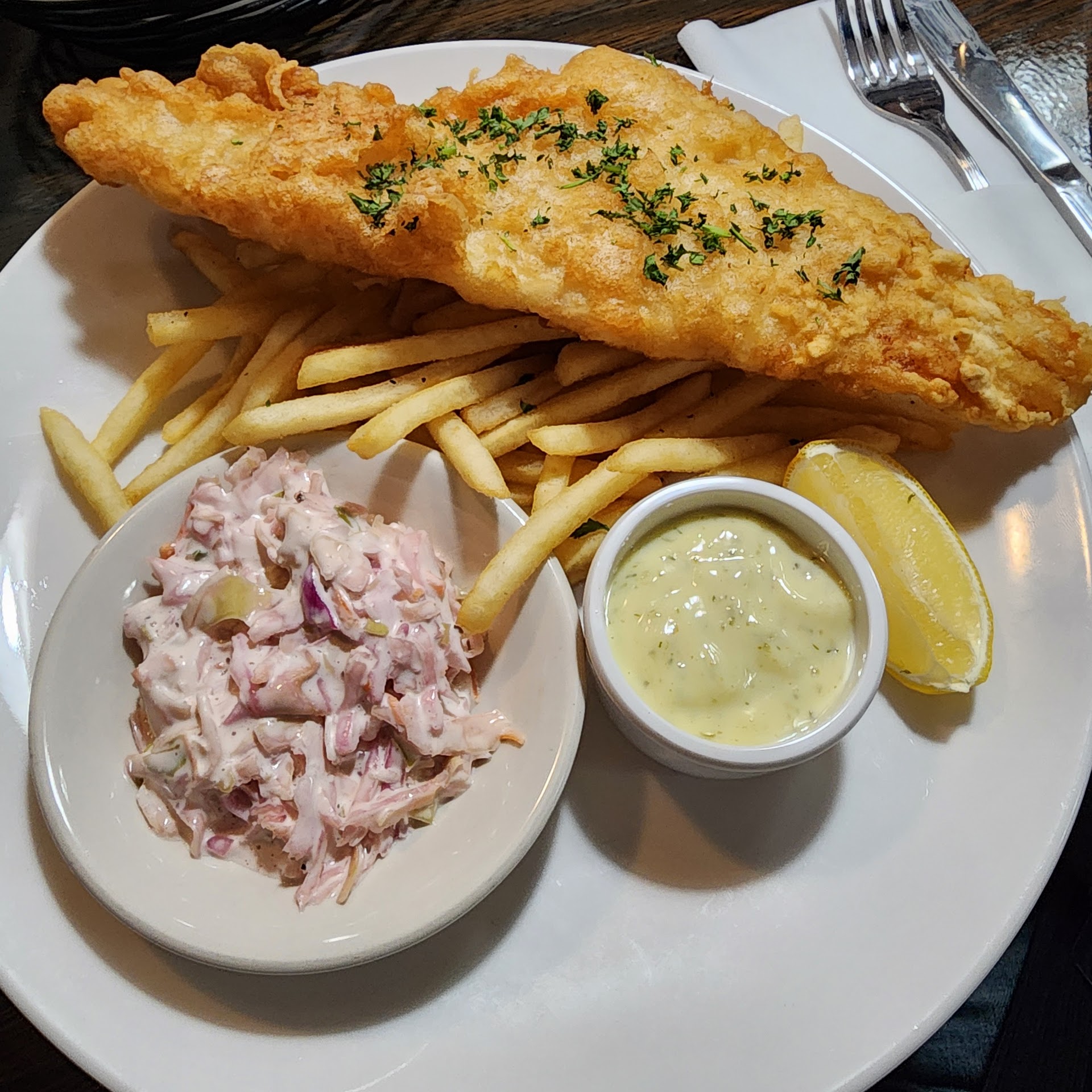 The French fries were amazing. I despise fries that are overly greasy. These, and I say this with high praise, were elevated McDonald's French fries. Even as the cooler through the meal they were amazing. If paired with an aioli perhaps they'd be elevated further.