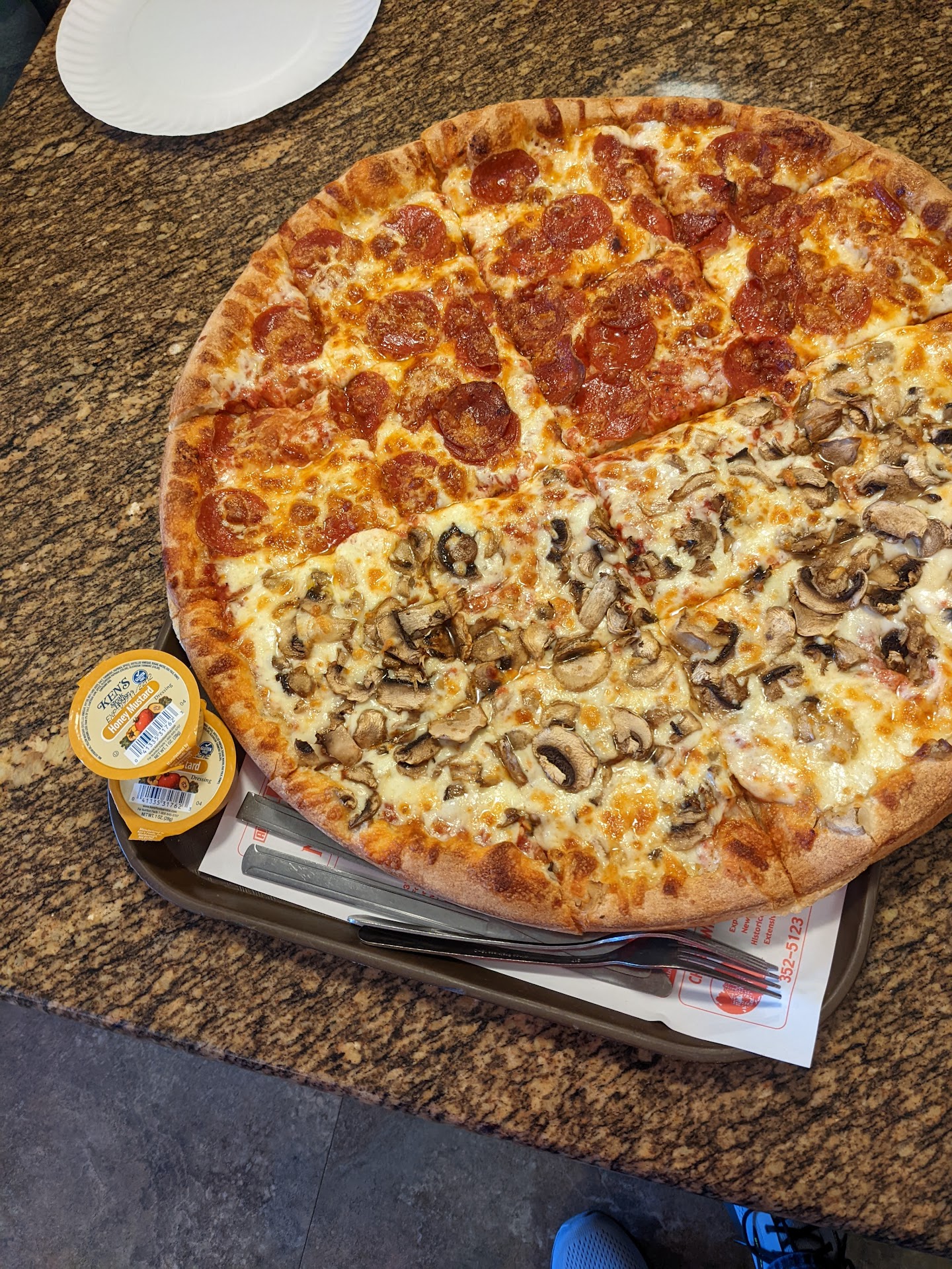Read moreWe just moved to the Keene area from Connecticut where Greek Pizza houses are like a religion. We were looking for our new "go to" place and we heard this was the place so we gave it a go. In short; the food was alright, not great, not terrible but alright. We ordered a Large pizza, Greek salad, fries and some soft drinks. Their large is what we would call a medium in Connecticut, their Family size would be a large. Lots of crust on this pizza, meaning the sauce, cheese and topping don't go very far up. everyone ate about two-thirds up the slice. I need just enough crust to hold the slice, the rest I want edible. The Greek salad was pretty good but cheap, no Delmathas, just three olives, one pepperroncini, If I'm going to pay $8 plus dollars for a Greek salad I want some love put into it. The fries were good, no complaint there. My main knock for those who don't know is that this pizza palace is self-serve?? As soon as you come in the door you walk into a dozen people blocking your way trying to place an order. Numbers are continually being called out like you are eating in a Bingo hall. No waitress coming over with a nice greeting and some placemats and crayons for the children. Just cheep plastic tray and paper plates and do it yourself. When we left, I asked my wife what she though and she "It was alright...but stressful." I think that pretty much sums it up. In all fairness, they did a very swift business while we were there but not the...