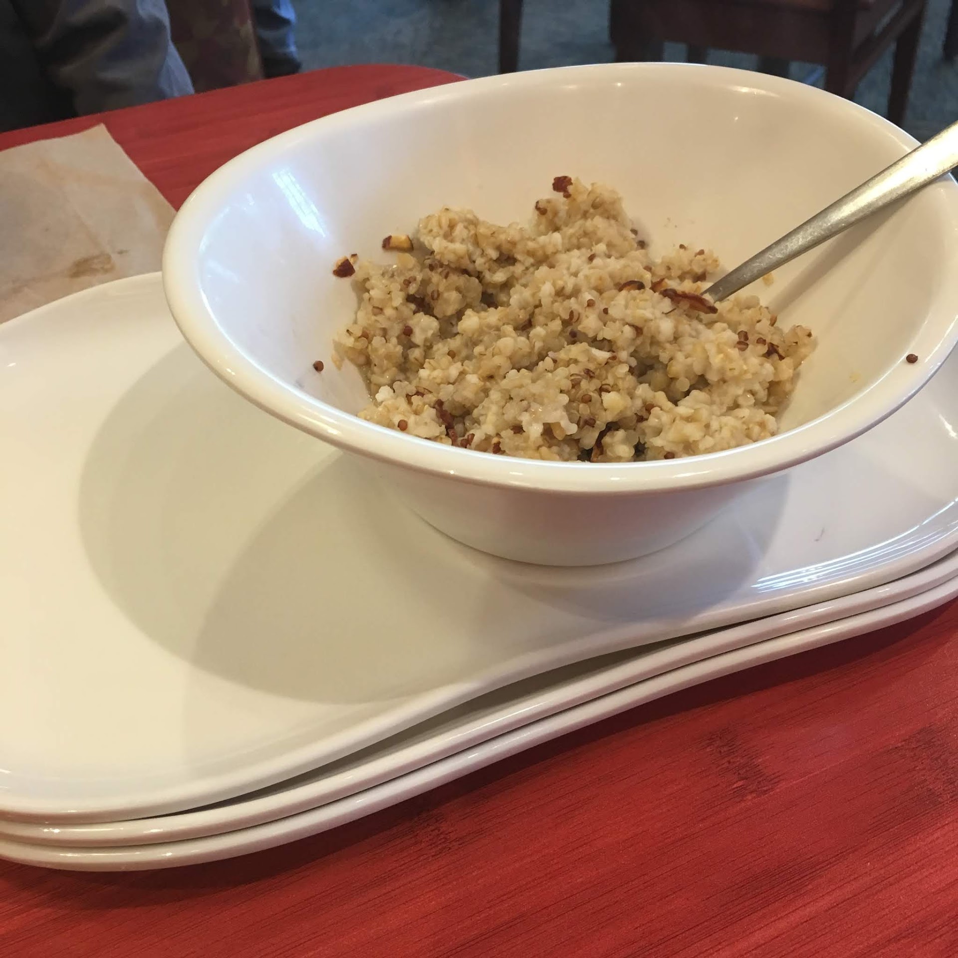 Read moreServing microwaved honey and almonds for breakfast. I am sorry to report that this once reliable Panera has fallen to the wolves. The first sign of its demise was the employee reading a magazine behind the register. When asked if he was working? "No, I am on break." When the oatmeal qinoa honey power bowl arrived it was covered with cinnamon crunch brown sugar, not honey. A replacement was requested. The replacement was cold. A replacment was requested. The replacement was the same bowl microwaved to excessive temperatures, including the almonds and the honey/ Who microwaves almonds and honey? It was disgusting. The replacement came back with no spoon. You can see in the photo one tray for each replacement requested. Plus the spoon makes 4 trips to the counter to get an inferior product. When I asked what was going on back there, what happened to the quality control? "We're just bouncing around." Time to stop bouncing and shape up. Next time I want a quinoa power bowl I will go to The Works, a locally owned chain with a branch on Main Street in...