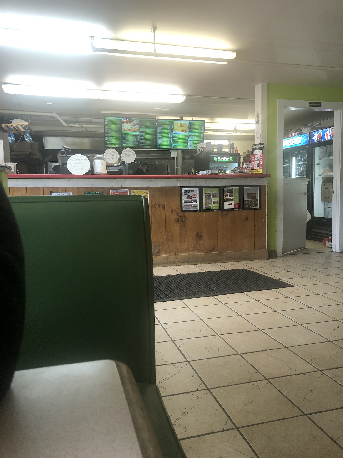 Two of us came directly from the end of a Wake service nearby to order pizza for us and others we knew were joining us shortly. This was a Tuesday night and 1 hour before closing, so we were concerned if there would be enough time for us all to eat. The owner immediately put us at ease and told us no problem at all, he would be happy to stay open for us as long as we needed. Another friendly worker took our order of 4 largest pizzas in: Supreme, Steak Bomb, Veggie Lovers, and a simple Pepperoni. Family & friends arrived and we ended up with 14 adults & 1 child! The child immediately gave her approval with the courtesy play kitchen.