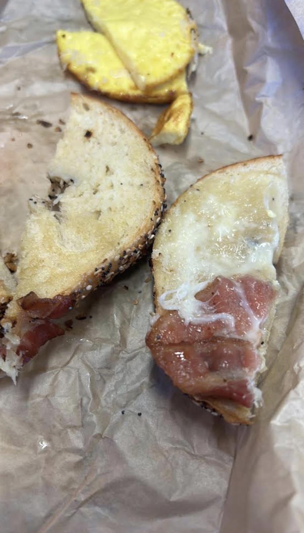 I opened the sandwich which had somehow become SOGGY in it's brief sandwich life, to find HARDLY ANY chicken salad - hardly anything on the bread, and the greens were wilted, a REAL hot mess!