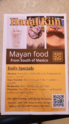 Hanal Kiin is the best spot in Keizer for authentic Mayan food and refreshing treats. The cochinita pibill tacos are a must—rich, slow-roasted pork with just the right balance of citrus and spice. They’re flavorful, tender, and unforgettable.