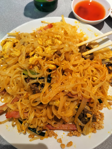 The food was absolutely terrible. We didn't even eat most of our food. Ordered BBQ pork pad thai, miso ramen with tempura shrimp, egg flower soup, potstickers and Thai iced tea. The pad thai had absolutely no sauce, exactly 5 tiny strips (not whole slices) of BBQ pork and looked like a plate of scrambled eggs with some noodles and had crushed peanuts on the side. The miso ramen was bland. I asked for bamboo shoots and no egg and was given it with egg and no bamboo shoots, I asked for the shoots on the side and was given cold foul cleaner smelling shoots. The egg flower soup had ham in it which was a not so good interesting take. The pot stickers, tempura shrimp and thai iced tea were the best items. We didn't eat much but what we did eat left us feeling sick. I let the hostess know that we were not happy with our meal and let us only pay for half, this was nice but did not make up for our experience. I will not be going back. If you want good...