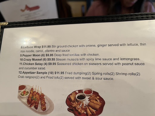 I ordered the evil jungle prints, and I’ve never had this dish taste so bland before. I’ve ordered this dish numerous times from other restaurants and it comes with a delicious coconut curry sauce that the vegetables and rice come with and this was very bland and dry, very flavorless. I was most of the way done and then the waitress came by and asked if the food was OK I commented where is all the curry and coconut sauce and she said this is how it comes. I’ve been eating Thai food for years numerous restaurants make evil jungle prints I have never had a worse experience with bland, boring food that has no sauce with it at a Thai restaurant. Then this place I would highly recommend not coming here and choosing another Thai restaurant in town pretty much any other Thai restaurant in town was better than this . I ate about 1/3 of the food because it’s too expensive to throw away. Realistically I’m going to go buy some coconut milk and go home and add it to the curry that I have and see if I can fix this dish because $17 is way too expensive for some rice and vegetables to be...