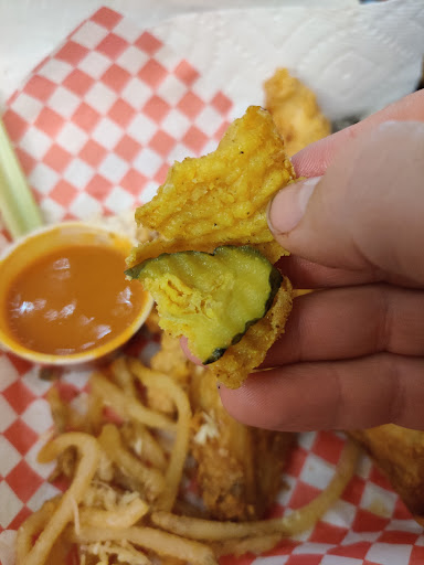 In all that time I had to waste fixing their mistakes, our food got cold. I started by eating a few garlic fries. The flavor was pretty good, but the texture was oily and squishy because the fat had cooled down and congealed. The chicken fingers breading and flavor were good, but the breast tenders themselves were very tough, dry, and honestly had the taste and texture of a previously frozen/thawed piece of meat. The chicken wings were crunchy, and had good flavor. The baked beans were sweet and mildly smokey, with a little onion kick. The sauces I got were Cajun, honey garlic, medium buffalo, Bleu cheese, and garlic parmesan. Everything but the honey garlic were great. The honey garlic didn't have notable garlic element, it just tasted like BBQ sauce with a slight essence of garlic. I took issue with the Medium because it had a sweetness to it that was overpowering and completely altered the character of the sauce, and I even had to mix in some Frank's just so it would taste like a buffalo sauce. The last, and most disappointing part of this meal was the fried pickles. I can't sugar coat, they were just disgusting. The breading was pretty neutral and flavorless, but it was slightly bitter for some reason. The pickles themselves seriously tasted like the "self serve" bulk pickles you'd find at a 7-11, or Walmart bulk pickle chips 🤢. They were thin, overly salty, limp, and bitter. Not enjoyable in the least. At first I was also disappointed with the overall portion because we only got like 12 fried pickles chips for $6, but we ended up throwing away half because they were THAT bad so lose-lose-lose for us. $34 mostly a waste....
