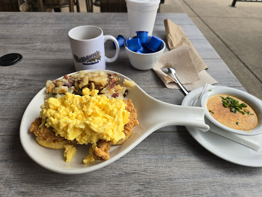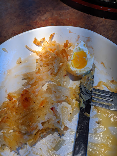 First off, Noah was my waiter and he was so sweet and knowledgeable of the menu. It was hard to make a decision so he recommended a couple of dishes. I decided on the Old Time (I think that was the name😬). It was soooo good. I opted to have the sauce on the side just in case I didn't like it, but I did. However, the biscuit did it for me. It was like they used a flavored butter and the griddle to make it a little crispy. I like red potatoes so I went for that instead of hash browns. i don't eat a lot, so I was able to bring half home.