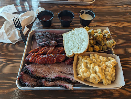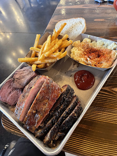 Time for an honest review. I see a lot of 5star reviews and can't figure out why. The food was not that great at all. I had the ribs brisket and sausage. The ribs were so smokey they left a bad smokey taste in my mouth seems like they tried to smoke them hot and fast. Ribs should be low and slow you want the meat to fall off the bone when you bite the meat but you don't want it falling off the bone when you pick it up. I had to pull pretty hard to get the meat off the bone. The first bite told me everything I needed to know. You couldn't even taste the meat it was so smokey. The sausage wasn't even cut all the way through. Honestly looked liked they pre cut the meat. The brisket was okay you couldn't really taste the bark or really even see the bark. I like a little crunch from my bark. When I was ordering I could see that they pre cut all the meat. You should never pre cut the meat specially brisket because it Oxidizes the meat. I've been cooking BBQ for a long time and you should cut the meat when someone orders it like every other BBQ place.