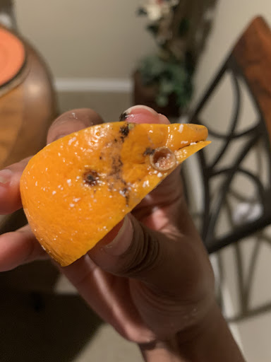 Went last night and found this, after I finished my drink. Never ever coming here again. Iāve gone to the hurst location and they make drinks way better than this location. This is disgusting and as I read reviews I see them doing things to their fruit is common. I wouldnāt return if I were anyone and on top of that, Iām going to contact the health and food department as well as sending this off to a poison poison control. The people who work there are nasty. I was also able to scrape it off with my nail but I have no idea what that black stuff is. Workers are disgusting. Will never return and Iām calling the city....