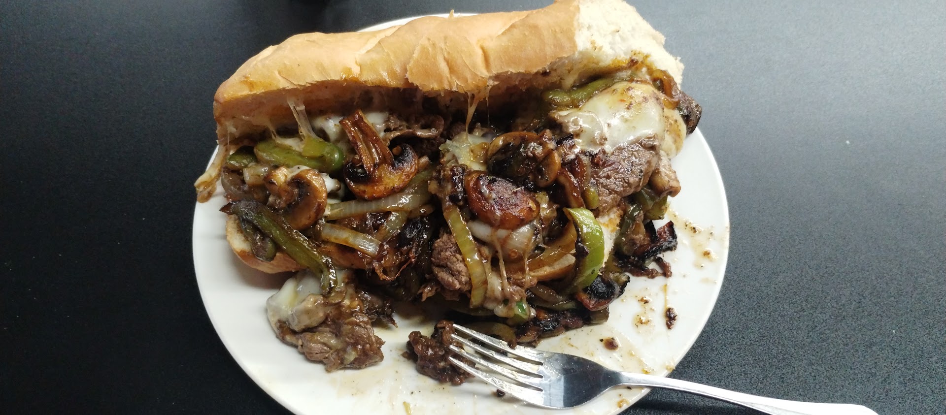 The Sandwich was delicious, the veggies (Mushrooms, Green Peppers, Onions and Jalapenos were in abundance and cooked just right by my standards. The meat was a bit saltier (spices) than I would prefer so I will ask for less next time.