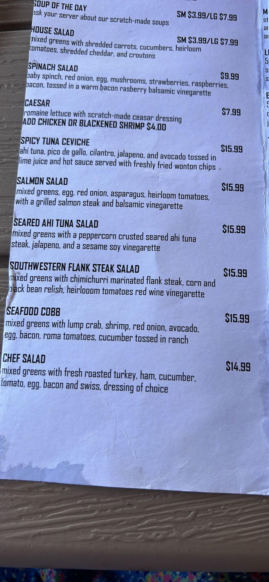 Seafood Cobb salad is not what is listed on the menu. It does not come with lump crab and the shrimp on it are the frozen baby shrimp. When I returned it to the kitchen I was yelled at by the âowner of the kitchenâ (in front of my 6 yr old daughter) on why did I expect large shrimp on a âchef saladâ and that they took off the crab meat because the price increased. I did not argue with that, my response was that it had not met my expectations since it was different than what the menu described. I was then told they canât change all the menus when the menus are paper and are already falling apart. Completely unprofessional. This was our first experience here as people had recommended their brunch in the food group we are in for our area. We wonât ever be back and canât believe we were spoken...