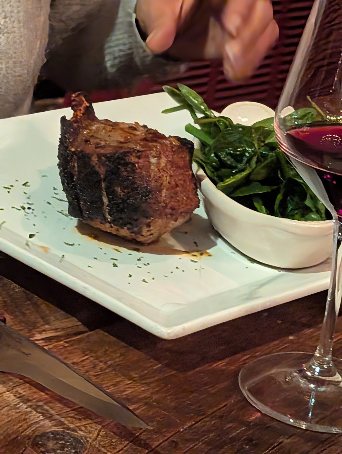 It still tasted decent, so okay. But we were certainly not offered a chance for them to rectify the situation and replace it with our steak of choice, nor was the price reduced beyond the $82 that this boneless, smaller oz. steak cost according to the menu.
