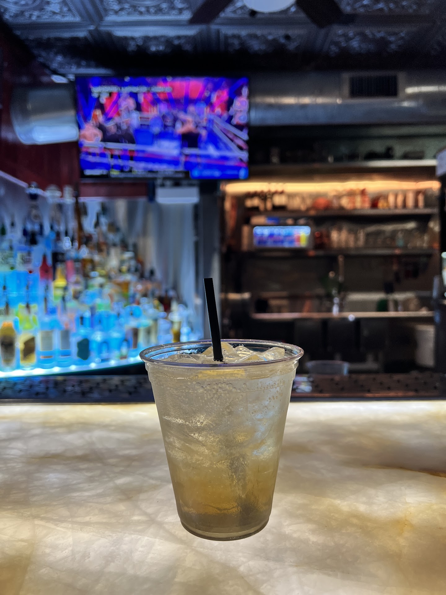Great music, popular or dancey stuff. Usually got Chive TV on which is great to laugh at when I get off and go there to zone out over a drink (lol) Bar service is also quick and friendly! Bumpin' A/C unit in the heat and always the cleanest restrooms. AND they finally started carrying black cherry White Claw! Finally! Seriously can't find something not to love...