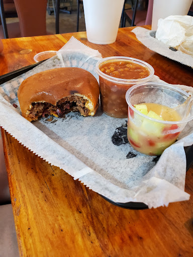 Our first visit to GBC Slap N’ Good and we were so impressed with the food. My fiancé got a chopped beef sandwich, and jalapeño with cheddar sausage and I got the chopped beef loaded potato. Everything was so delicious, we truly enjoyed our lunch date. After speaking with one of the servers she realized it was our first time in and she said we can get a dessert on the house! I was expecting her to give us 1 dessert to share but she said absolutely not, we each were able to pick from their selection and ever the dessert was amazing! On our way out, we headed to the counter to pay only to be told “y’all have a great day!” My fiancé and I were confused because we hadn’t paid our bill so we reminded the sweet lady and she told us that they feel it in their hearts to bless two tables a day because as long as they are able to keep their doors open, they feel blessed enough to pay it forward….. when I tell you this brought literal tears to my eyes and so much joy to my heart… here lately there’s been more complaints regarding customer service but from the minute we walked in to the second we left(even if we would’ve had to pay for the food ourselves) the service and atmosphere was GREAT!! Good please...