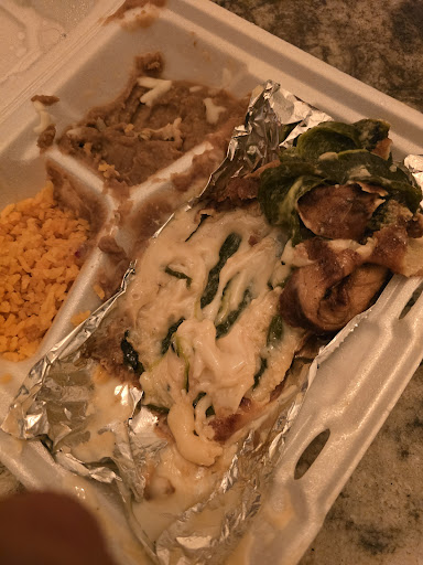 Ordered a burrito dinner and an enchilada dinner to go. After driving 20 minutes home with the food I was sadly disappointed. The burrito was inedible due to the amount of spice. It was HOT (and our family loves spicy food!) and with the enchilada dinner the sauce was so salty that it made the enchiladas themselves inedible. The only thing we were able to eat were the rice and beans which were very good!