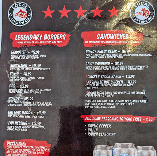 ย ย ย Read moreThis was my first time here. I went with friends who highly recommended the burgers. The bar is an old converted house as far as I can tell and nothing fancy about it. There is no parking on the main road in front of the business, so you need to drive around the back. You do need to climb stairs to get in from the back and from what I could see of the front door, there are a couple of steps up also. I never saw an entrance for wheelchair access, but that doesn't mean there isn't one....you would want to call first to check. The place has games set up in different rooms, plus the normal TV sets hanging on the walls for sports. When we showed up a little after noon, we were the only ones there. Another group of guys showed up when we were leaving so the bar was not busy for lunch. We all ordered different Hamburgers and fries. Kudo's to the chef for knowing how to cook a medium burger, it was perfect!!! Fries were spot on and if you're not a ketchup person, ask for a side of Rowdy sauce to dip your fries in..... wonderful secret sauce. Price was pretty normal and food was excellent ๐ Their hours are pretty normal for a bar, check the website if you need the...