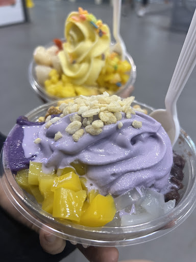The halo halo was delicious but the man helping us had an attitude that was not. We came and asked him if it was okay to still order, since it was near closing and he said āof course, you still have time, go aheadā and since weād looked at the menu prior to coming, we immediately ordered. He raised his eyebrows and went to make our stuff, which I didnāt understand but ignored. Then when he returned with our stuff, he very rudely said ānext time, iām gonna say no, this was too way too much and itās too lateā(all we got was halo halo and a boba)⦠By then it was 10, which is closing time. I donāt see why it was necessary to make a rude comment considering we asked in advance to be considerate of his time. Regardless it was still open and he was at the window ready to help us⦠close the store, turn off the āOPENā sign, change the hours, or donāt come to the window if you are not willing to help us. Might I add we came back up to ask for to go lids and he ROLLED his eyes, for why...