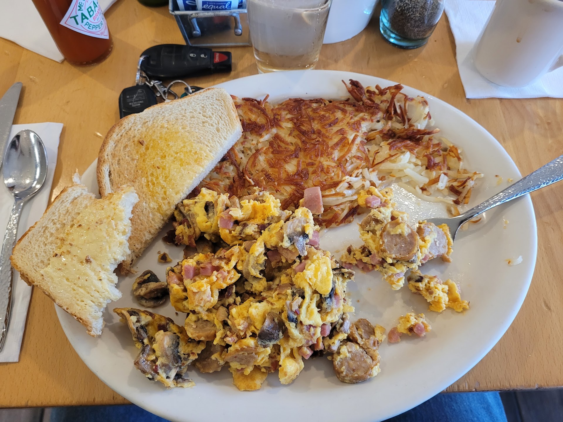 3/28/25: Second week of service - Teto remembered me from my first visit and was just as friendly. Table order included: Corned beef hash and ham & eggs (not photographed). I was there for a quick bit and was in and out in 45 minutes. Perfect!