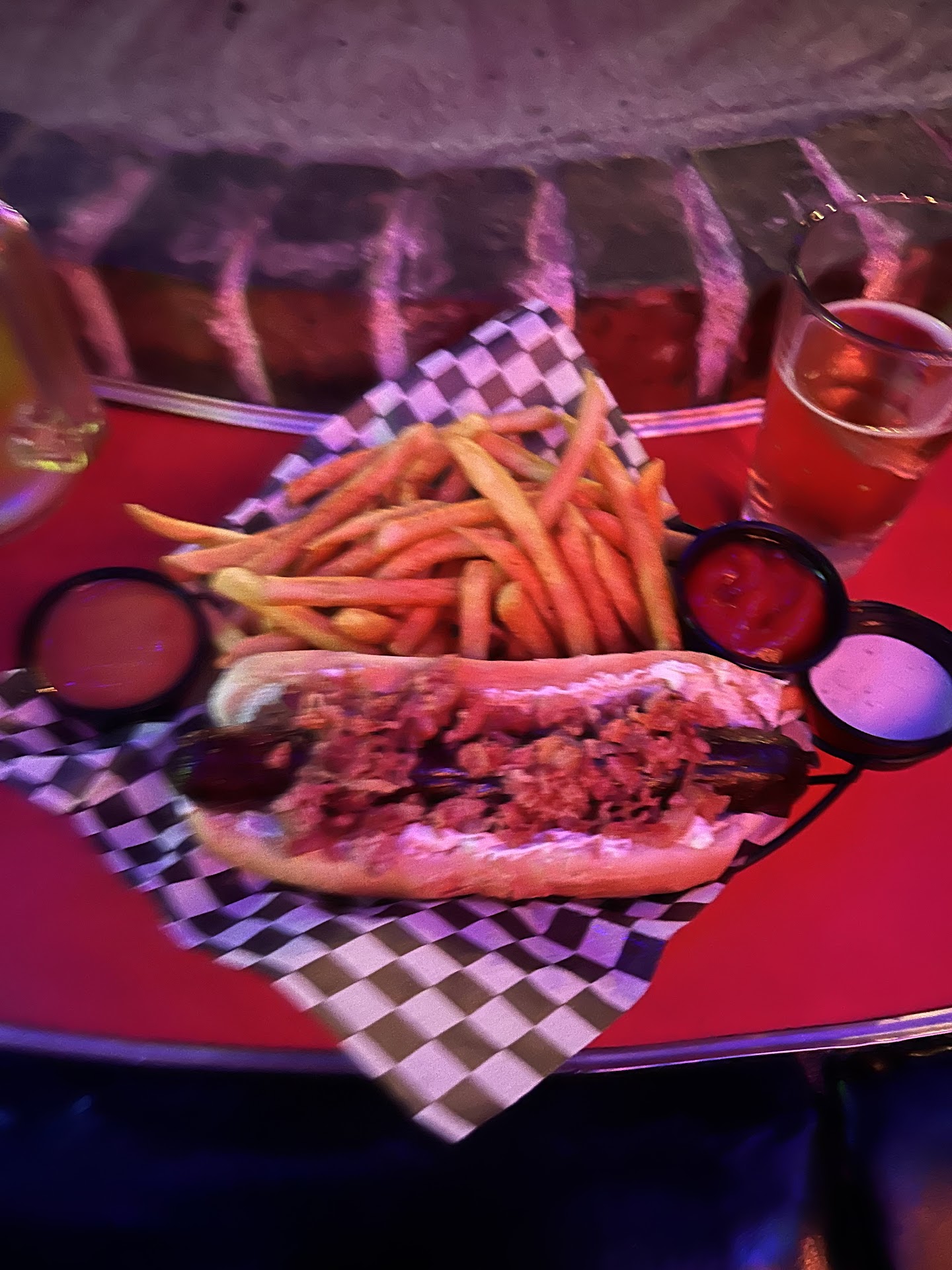 This is one of those places that would be a little casino if it could, but lands awkwardly in the divey-sports-bar category. It's not cheap enough to be a dive, it's not bright or open enough to be a sports bar, but it's got lots of screens—and for some reason—a tiny stage at the same time. Maybe for karaoke?