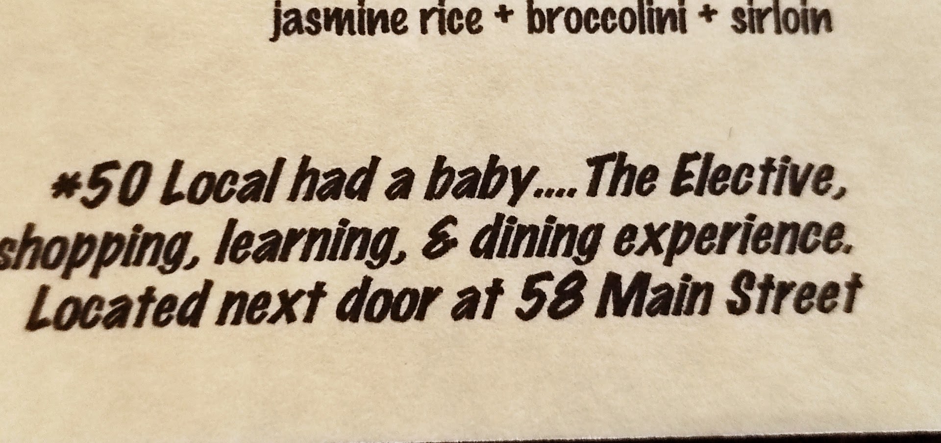 If you come through the side entrance, there's a cute gift shop you have to check out. 50 Local also had a baby name 58 Main. Check my photos. Also, you can park right there on main street for two hours no worries. 🤗
