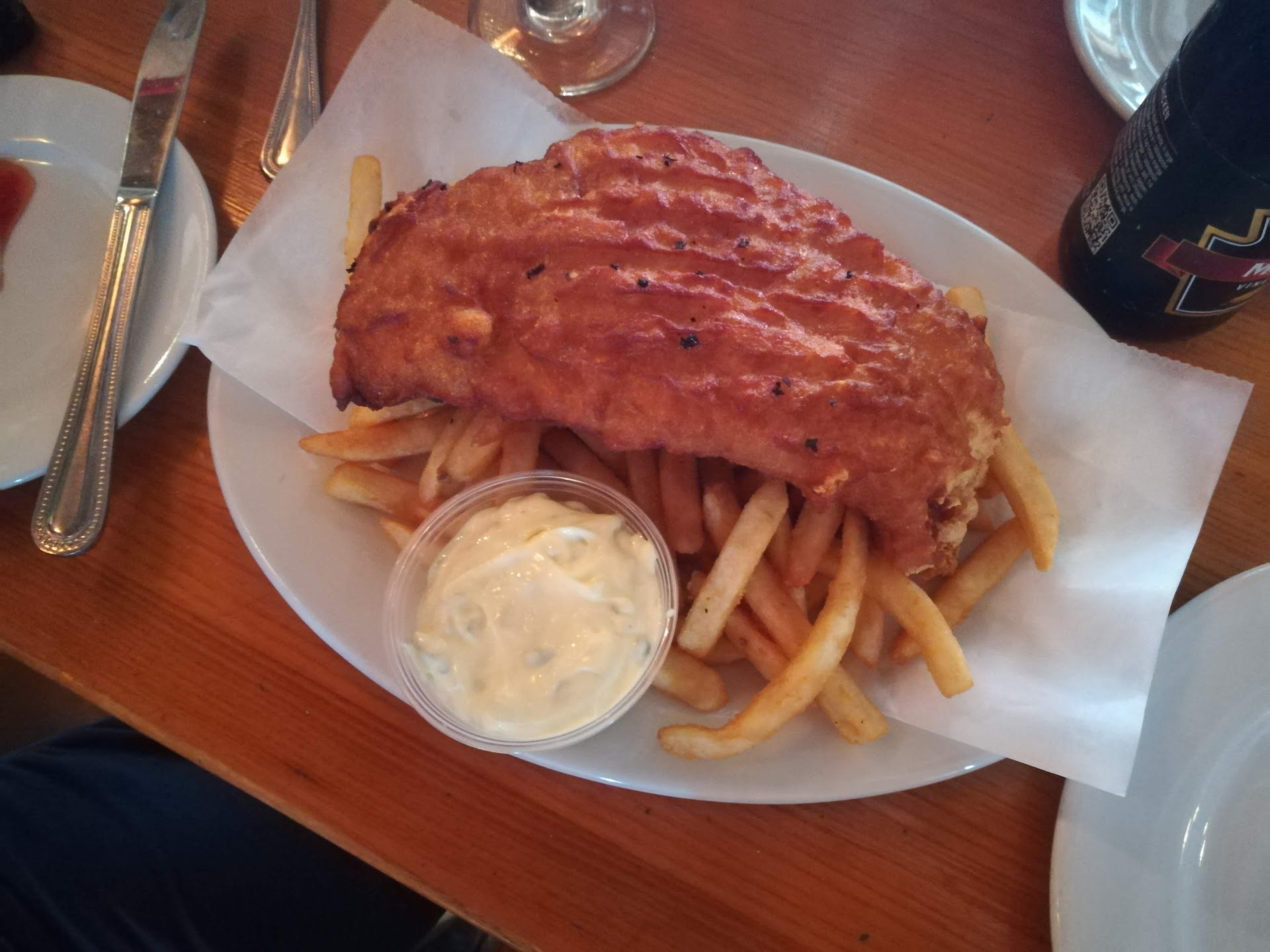 Read moreWe weren't expecting to eat here twice in one day, but we did! The crab cakes and fish n chips at lunch (where we ducked in out of the rain just for a beer and surprised ourselves by eating again) were so well-cooked and fresh, when it came time to think about dinner, we didn't even feel like we were missing out on anything by going back. The broiled seafood platter was a little under-seasoned but since we live in the south where everything is a salt lick, we assume it is our palates that are more off than the seasoning. Lobster roll was just as good as the famous places around K'port, minus the wait or the upcharge. While this place wasn't a steal, the prices were reasonable, especially compared to other nearby eateries, but the quality and service made it a wonderful value. Already have recommended, would...