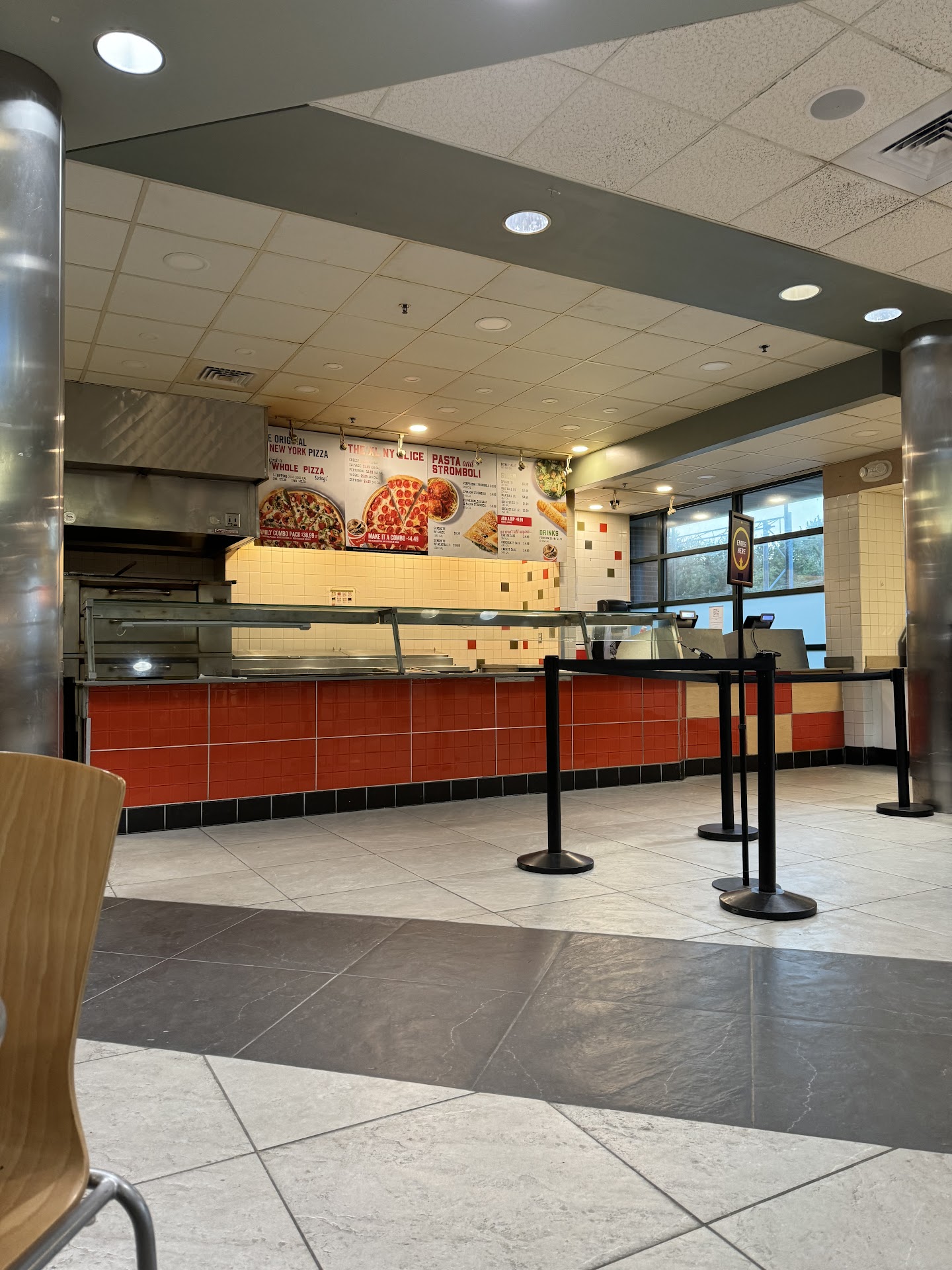 Burger King next door is horrible. They were eating on the sandwich line with gloves on. In their phones with gloves and not paying attention to any thing but themselves. So much cross contamination. No hand washing of any kind. I would never eat there with they display they put on especially when Kaitlyn and Sbarros right there kicking ass and taking names. Tighten up BK Kaitlyn and Sbarro I genuinely thank you. At almost 5pm this is my first meal of the day. It means a lot. Especially being...