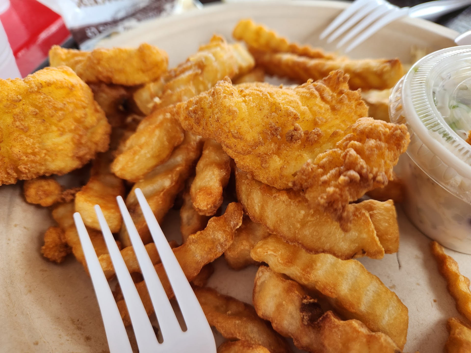 Read moreGreat inconspicuous-feeling spot in Cape Porpoise to grab some simple, quick but fresh seafood meals, snacks, and shareable plates. Yummy and filling chowder by the cup or bowl for small prices. I asked for their most popular or best recommendation, which was their fish and chips plate, where I added a chowder, all to share with my partner. It was nice and filling, not too salty and just perfectly fried for crispy on the outside and soft on the inside. Came with tartar. Drinks are self-serve. Best spot eat semi-outdoors (there was a tent over the picnic tables) with a view on the cove, possibility to walk on the lobster fishing docks and see the lighthouse on Goat Island in...